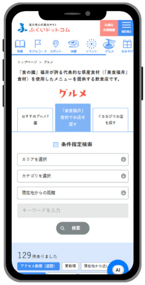 お出かけ前に地元の美味しい食材を扱う店が掲載された「ふくいドットコム」をチェック!