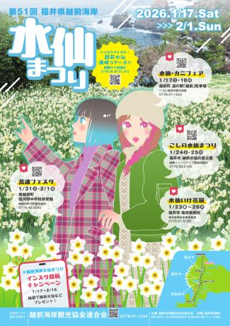 今回は越前水仙の魅力と、「水仙・カニフェア」の情報をご紹介していきますね。