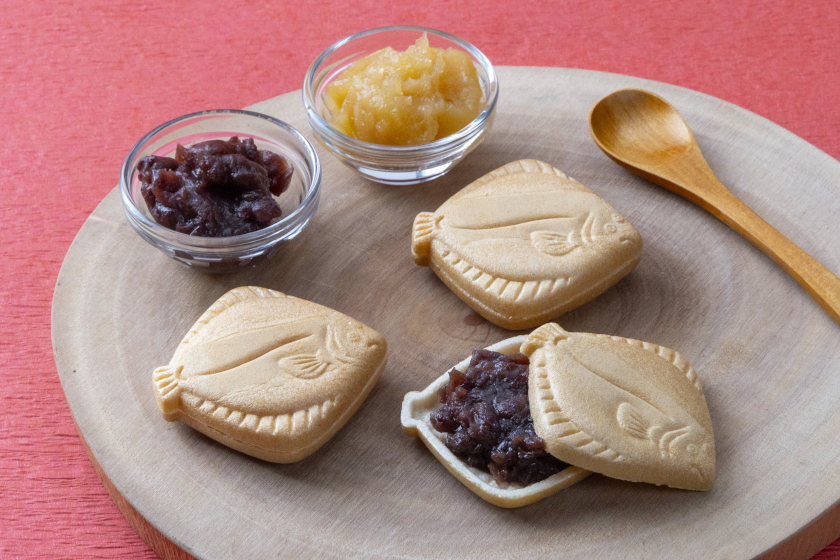 「ふくおおい最中」は、若狭の特産品「若狭かれい」をかたどったユニークな一品。