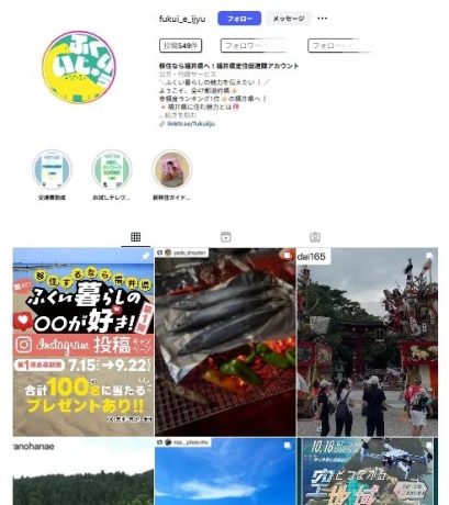 Instagramに投稿した写真や動画の中から、福井での充実した暮らしぶりが伝わるものを公式アカウントがリポスト!(リポスト前にDMにて確認あり)