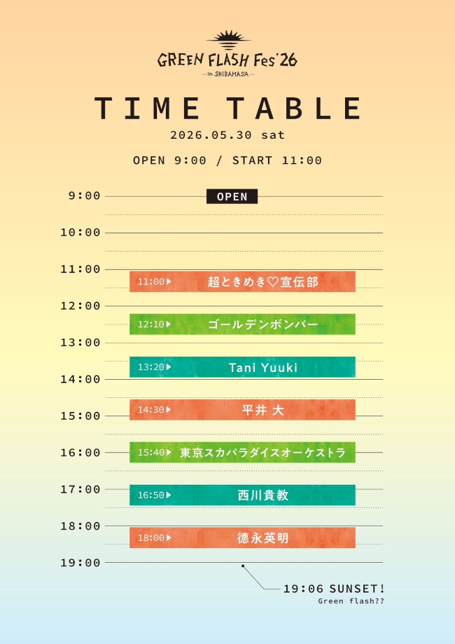 「GREEN FLASH Fes 2026(グリーンフラッシュフェス)」の出演アーティストが決定!坂井市芝政ワールドで5/30(土)に開催。