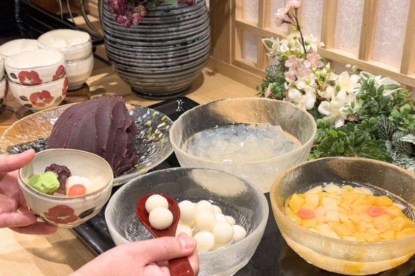 - 「あんみつバイキング」付なので、和スイーツ好きも大満足