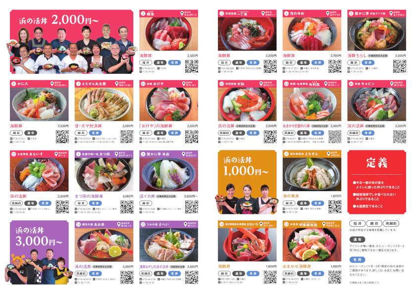 越前海岸沿いの福井市・越前町・南越前町の3つの漁師町を中心に、「今日一番の旬」「ここでしか食べられない」「お昼限定」という定義をクリアした店が勢ぞろい。