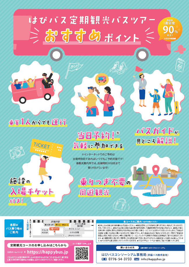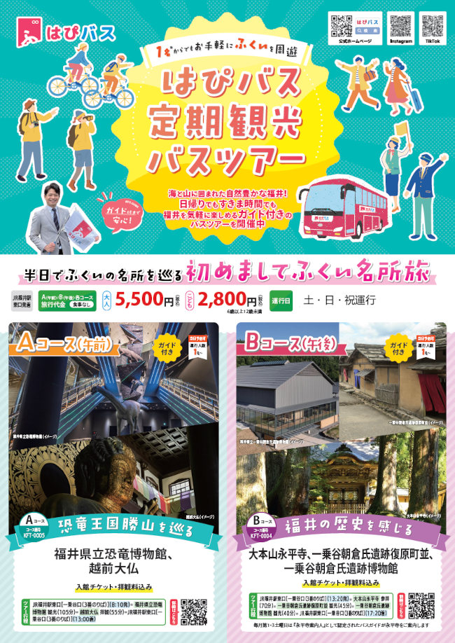- バスガイド付きなので福井がはじめての人もリピーターも楽しめる!
