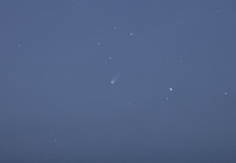 スマホで撮影したレモン彗星を拡大した画像。 中心付近から尾を引く姿が確認できます。