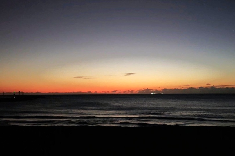 18時。夕焼けに染まる美しいサンセットビーチに集合。