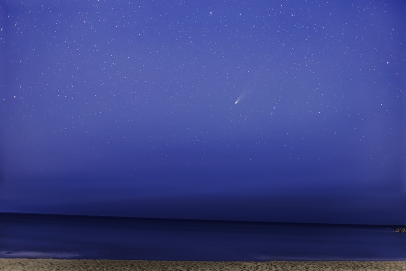ビーチの景色と一緒に彗星を写したい——
