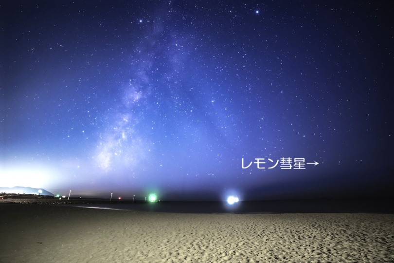 エッセル堤と天の川、レモン彗星