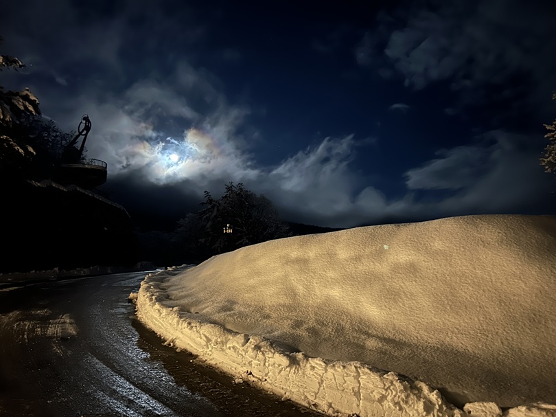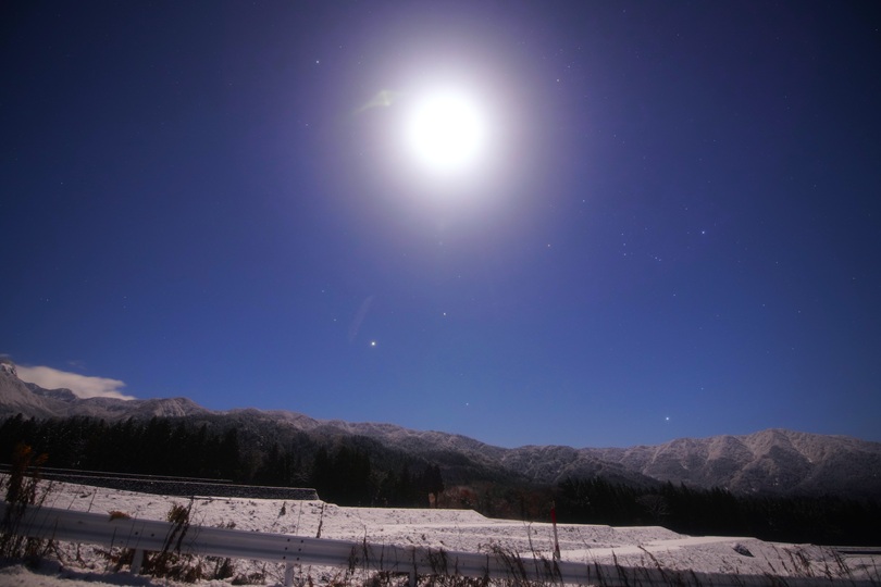 月明りに照らされた冠雪の山々や冬の風景が、昼間とまったく違う表情を見せてくれました。