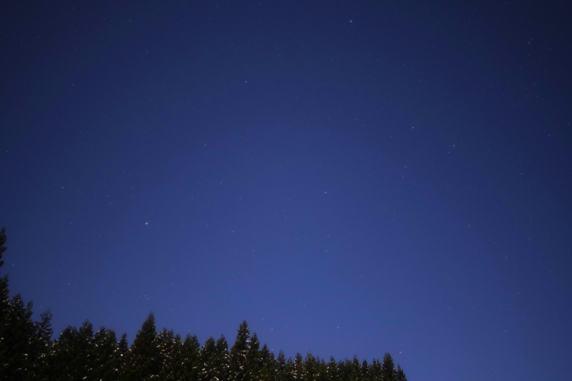 月のある夜は、月明かりで空が明るくなり、どうしても星は写りにくくなります。