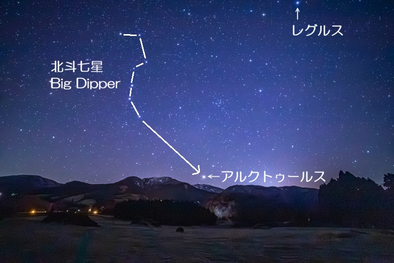 さらに、北斗七星からたどると、うしかい座の一等星 アルクトゥールスも見つけることができます。