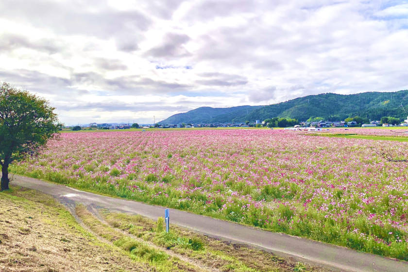福井市宮ノ下地区にある「コスモス広苑」が、今まさに見ごろを迎えています!(2025年10月15日現在)