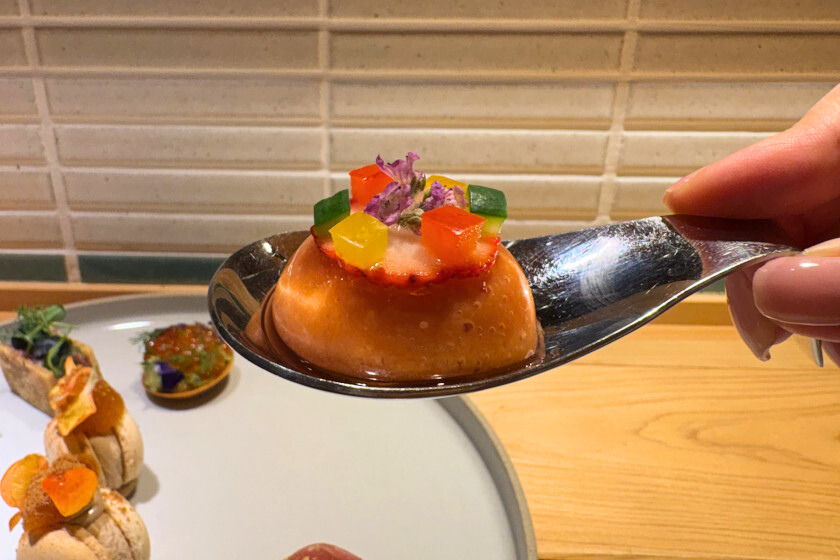 カウンタースタイルのフレンチですが、気負わず楽しめる雰囲気と、フルーツを使った芸術的な創作料理の数々が印象的なお店。