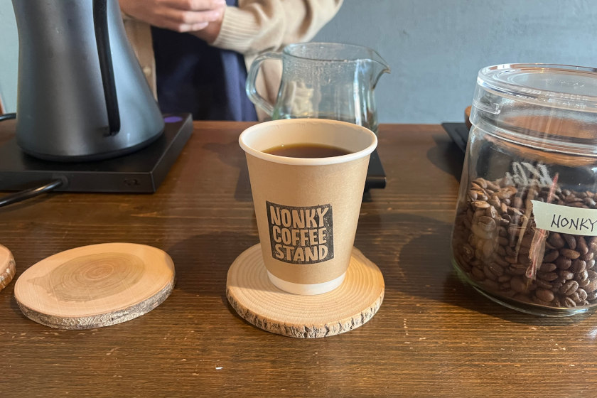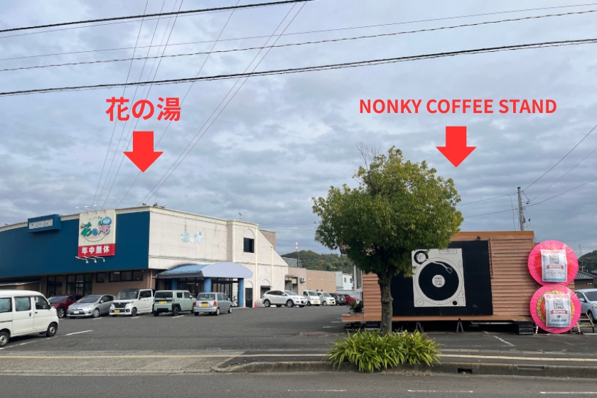 福井市にある「花の湯」駐車場内に、コンテナハウスのコーヒースタンド『NONKY COFFEE STAND(ノンキーコーヒースタンド)』がオープン。