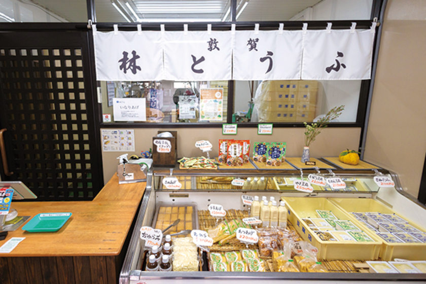 敦賀市元町。ガラス越しに厨房がのぞく「林とうふ」は、1937年に産声を上げた。