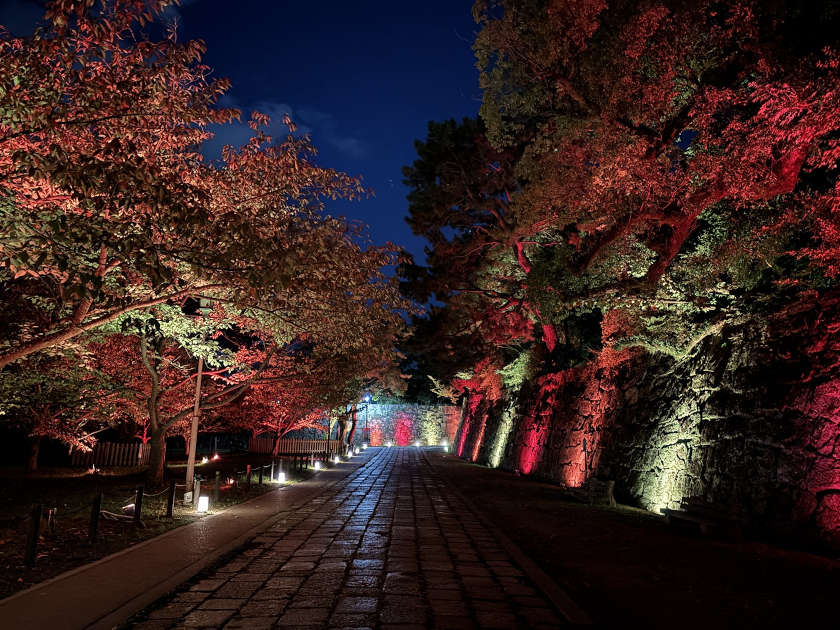夜には城内をカラフルに照らすライトアップイベント「和歌山城 光の回廊」が楽しめます。