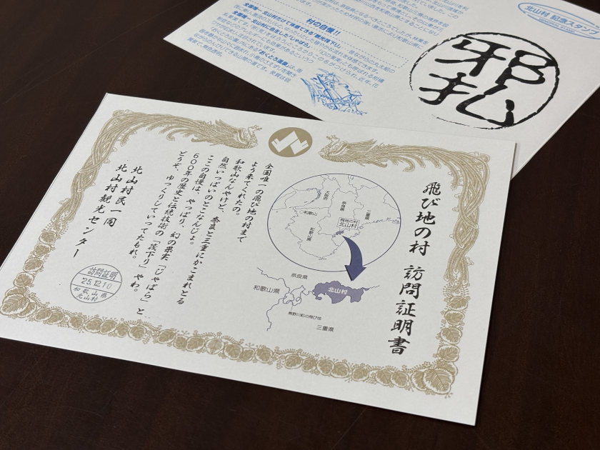 「北山村観光センター」では、飛び地の村訪問証明書をゲットできます