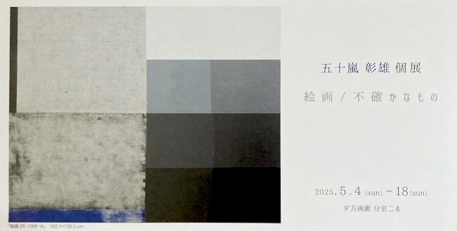 削りすぎて小さく開いた穴があったり、ガムテープのようにも見えるラインがあったり、ユーモアや人間くさい触覚的感覚的な作品など、1938年生まれの画家・五十嵐彰雄氏が、現在も尽きない絵画への探究をご紹介いたします。