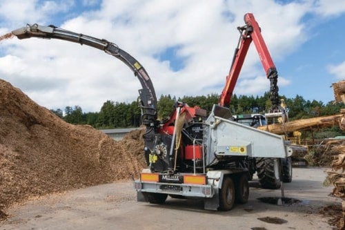 薪を運搬し木くずにする大型のトラクター移動式切削チッパー