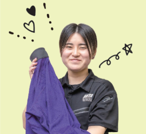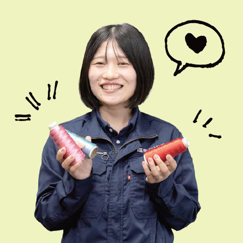 刺繍機のセットや刺繍後のバリカン作業を担当。覚えることは多いですが、少しずつできることが増えるのが励みです。自分の作業が製品として形になる瞬間に、大きな達成感があります。