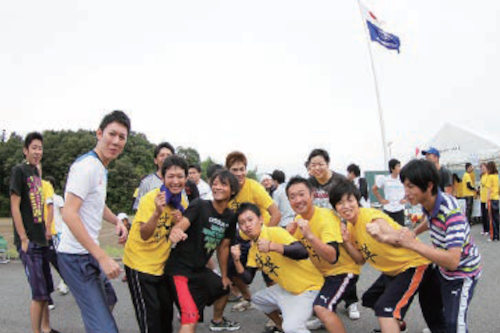 「あらた坂」の桜並木の下で、焼き鳥やおでんを食べながら花見ができる自慢のイベント。普段あまり話すことのない他部署の人とも交流できます。
