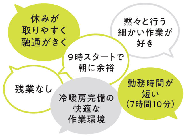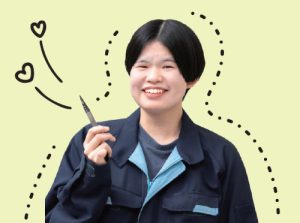 形や基準、数量などが注文通りになっているかを確認する作業を担当。一つ一つ確認を終えた時には達成感や自分の成長を感じます。集中して取り組む力や責任感も身についたと思います。