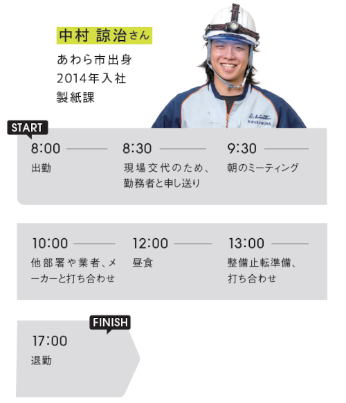 「パルパー」や「抄紙機(しょうしき)」などの大型機械を扱っています。最初は分からないことだらけですが、操作や点検作業を覚えるたびに、一歩ずつ成長している手応えを感じます。