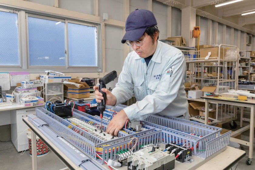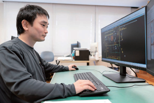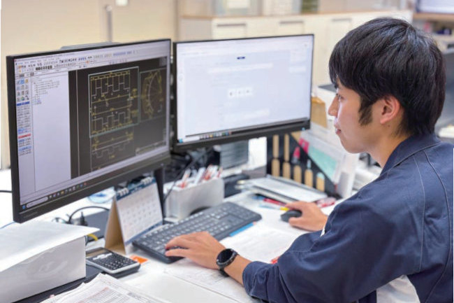ステージの制御盤や配線の設計を担当し、製造現場で制御プログラミングを実行することもあります。今はまだ先輩のサポートを受けながらですが、自分の設計が製品になるのを見るとやりがいを感じます。今後は知識や技術を向上させ、お客さまとの打ち合わせから任せてもらえるようになりたいです。