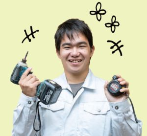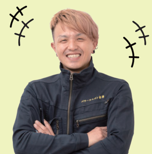 看板の取り付け工事が僕の仕事です。暑さや寒さが厳しい日もありますが、看板を見たお客さまが「かっこいい!ありがとうございます」と喜んでくださるとやっぱり嬉しいです。