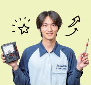 電気設備の点検等を行っています。数多くの仕組みを理解するのは大変ですが、1日の作業をやりきった時の達成感が気持ち良く、自分の身になっていると実感しています。