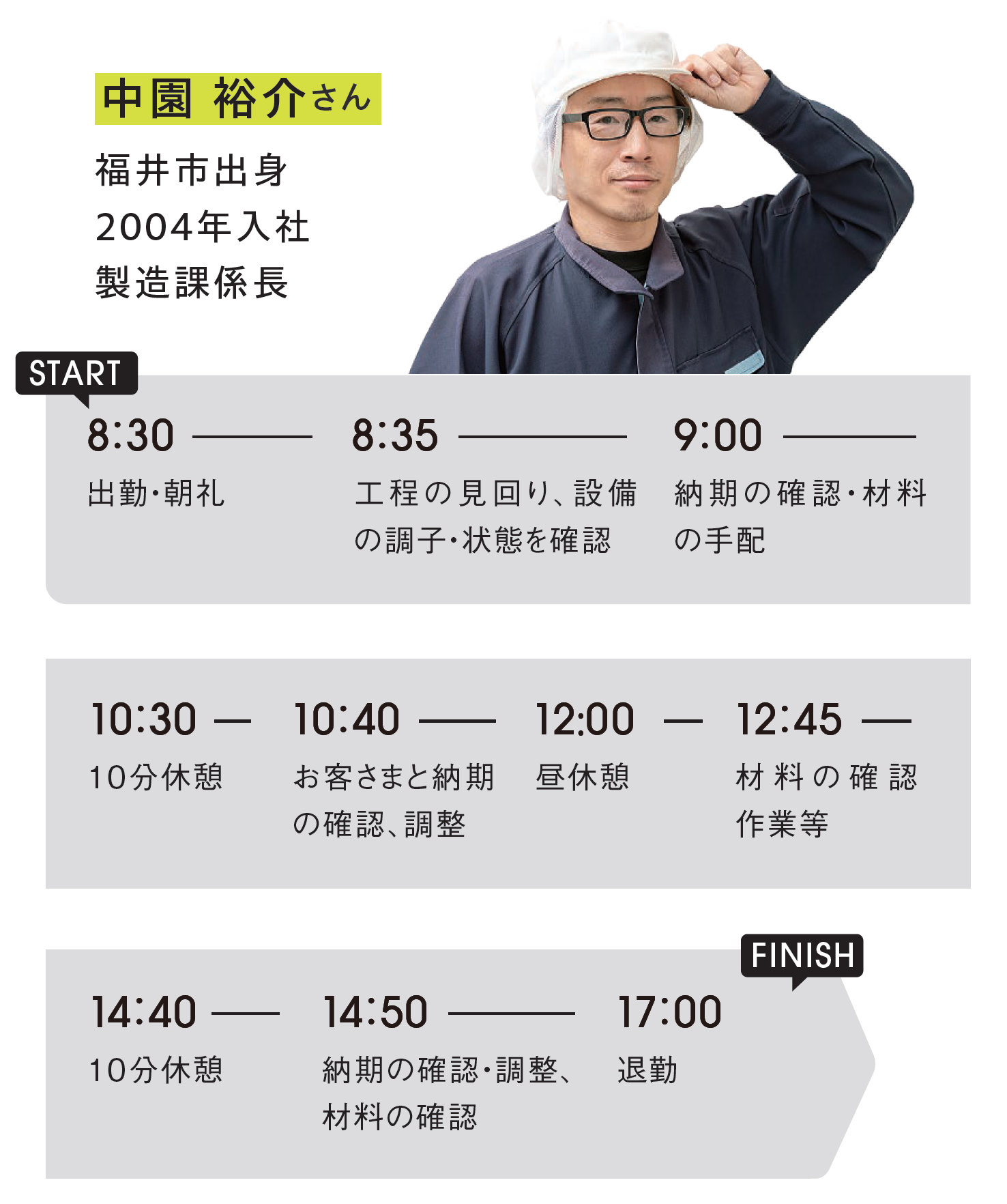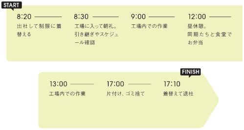 - 勤務時間:8:25~17:10