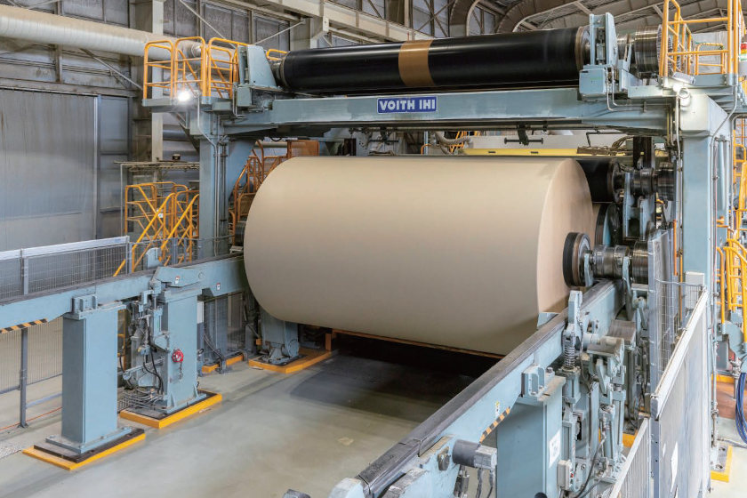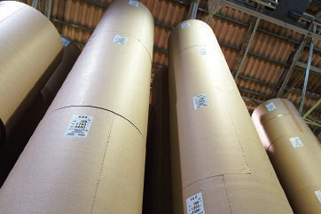 段ボール原紙をリールに巻き取っているところ