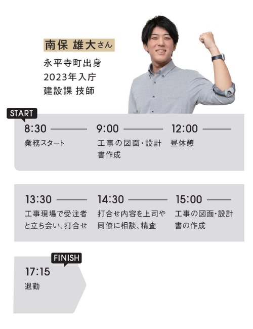 若い職員が多く、先輩と後輩、上司と部下も話しやすく、風通しの良い職場です。来庁者の方に明るい雰囲気で親しみやすいと言ってもらうことも。