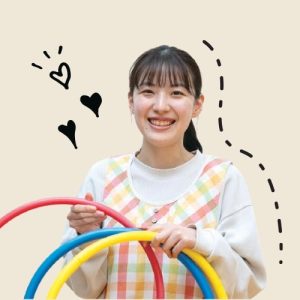 1歳児のクラスの先生として、おむつ交換や食事の援助、遊びの環境を整えるのが仕事。子どもの笑顔や成長を感じられた時、保護者の方からもらう感謝の言葉が励みです。