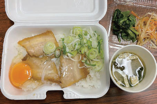 食べることが好きなので、週に2回来るキッチンカーは楽しみの一つ。この日はチャーシュー丼とナムル、味噌汁で栄養バランスもばっちり。食堂で同僚と話しながら食べています。