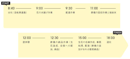 事業内容:フラワーショップの接客・販売、ネットショップ運営、冠婚葬祭用生花・花輪・盛篭・贈答品販売