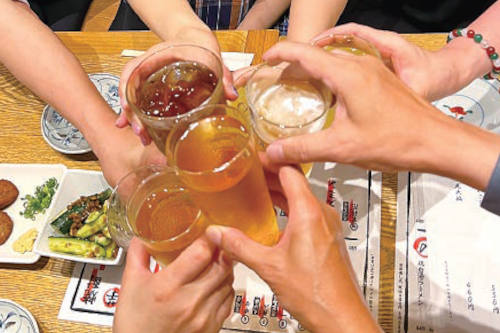 会社持ちで、1カ月に2回も飲み会があります。あわら市周辺のお店を選んで、みんなで楽しくおいしいお酒やご飯を囲みます。