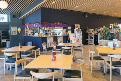 家電売場に敦賀の人気カフェ『tuzu』の支店を併設。自家焙煎コーヒーやスイーツなど豊富なメニューが楽しめ、テイクアウトも可能です。