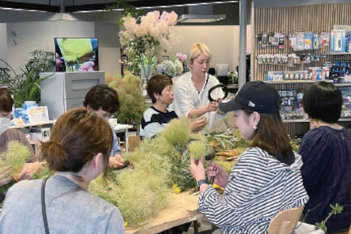 売場を利用して、フラワーワークショップや音楽ライブなど楽しいイベントも開催。地域の人たちが気軽に集い、歓談できる場を提供しています。