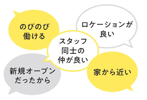 社員同士の仲が良く、新入社員もすぐに打ち解けられるアットホームな雰囲気。急な休みもフォローし合います