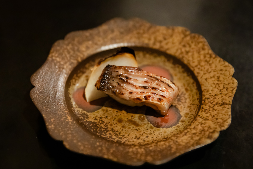 焼物は若狭ぐじの酒粕漬けに小蕪の炭焼きを添えて