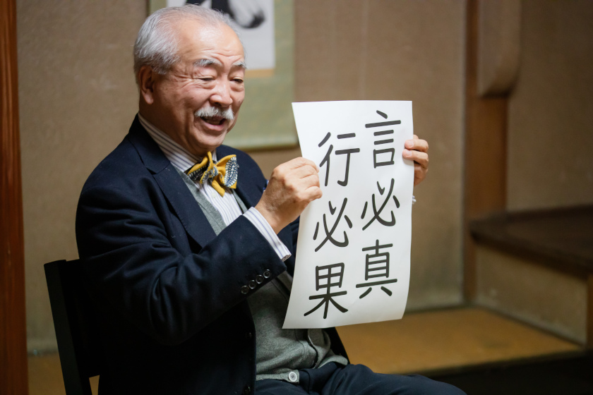 さらに、トークの中では菊乃井の包丁授与の制度についても紹介されました。5年以上修業した弟子には包丁を授け、その刃に「言必信 行必果」の文字を刻むそう。言ったことは必ず守り、やり遂げる。地方へ戻る弟子にはさらに「地産地消」という言葉を添え、その土地の食材で料理をつくるよう伝えてきたと村田さんはいいます。