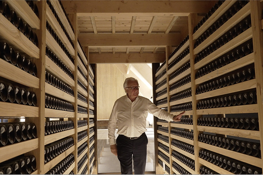 スパークリング日本酒の瓶内発酵を行う臥龍棟(がりゅうとう)のセラーを見学