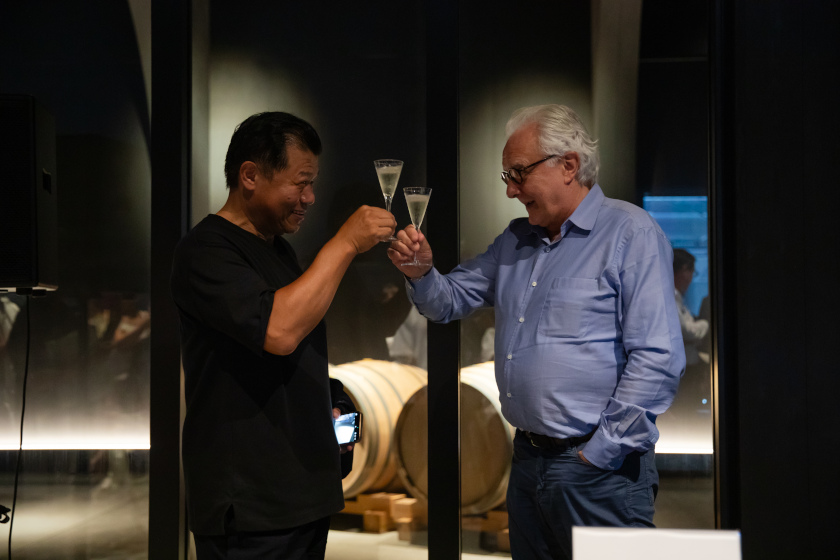 黒龍酒造八代目蔵元の水野直人さんと「黒龍AWA 序」で乾杯