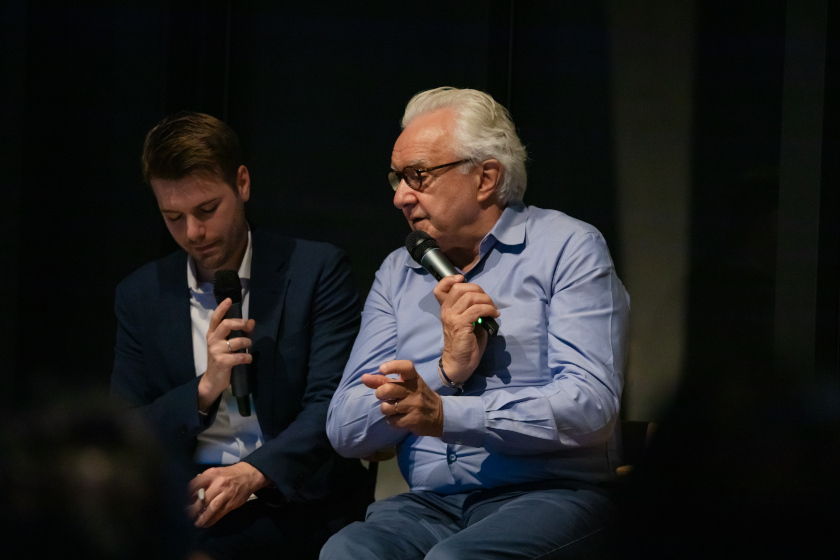 第1部のトークセッションでは、雑誌『あまから手帖』編集顧問でフードコラムニストの門上武司さんと、雑誌『料理王国』編集長の柴田泉さんが登壇。「未来に繋ぐ言葉と心」をテーマに、会場では、料理やレストランのあり方をめぐる熱い議論が交わされました。