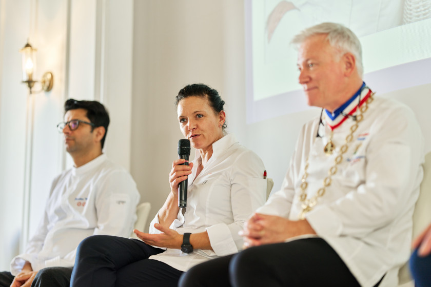 ファニー・レイ氏は南仏・プロヴァンス地域で活躍する女性シェフ。フランス料理界ではまだまだ数少ない存在である女性シェフということで、「ガストロノミーを考える際、女性と男性を分けて考えるべきか」という問いかけが。レイ氏は「男女で特に違いはない。世界的に見ても、どんな調理場においてもその料理を完成させていくのは決して男性だけの仕事ではなく、女性の仕事でもあると思う」と答えました。
