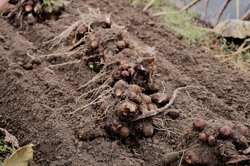 一本一本手掘りで掘り出したレンコン。泥付きで収穫できるため鮮度も抜群!