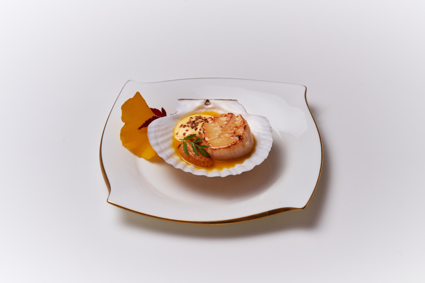 「ホタテ貝とグリルしたマンダリン」はファニー・レイ氏がレストランでも提供しているスペシャリテです。今回はソースに日本酒とみかんを使用。日本酒ならではの甘みとみかんの酸味が合わさった一皿に、大沢氏は敬意を込めて「ファニー・ファンタスティック!」と声を掛けました。
