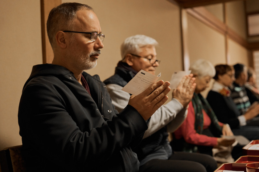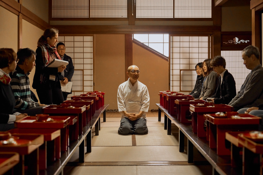 次に訪れたのは紅葉が深まる曹洞宗大本山「永平寺」。近年、“ZEN”がグローバルな広がりを見せており、海外からの注目度も高く、国内外から多くの人が訪れています。こちらでは坐禅を体験。静かな空気の中で呼吸を整えるひとときは、料理と向き合う姿勢とも通じる「調える」という行為の奥行きを感じさせます。