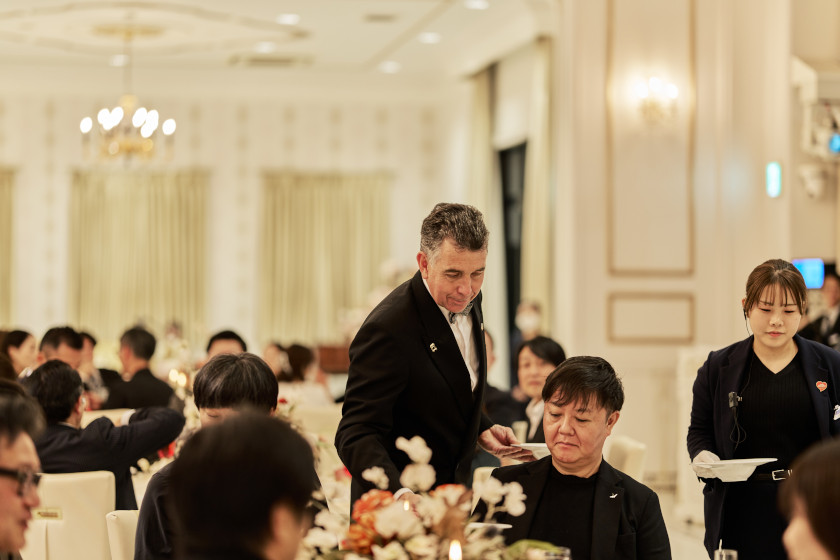 サービスのスペシャリストであるランギーユ氏・山本氏のさりげない指示によってローズガーデンのスタッフが動く様子は洗練そのもの。一つ一つの所作から両氏の哲学が感じられるひと時となりました。